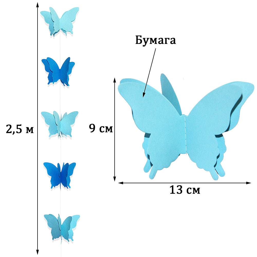 Расправьте крылья и создайте праздничное настроение. Гирлянда идеально подходит для украшения детских комнат, свадеб, окон, стен и фотозон. Объемные бабочки на нитке добавят нежности и легкости интерьеру.