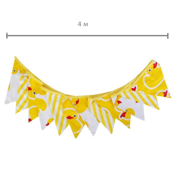 Гирлянда состоит из 12 флажков, расстояние между флажками 6 см, общая длина составляет 4 м.