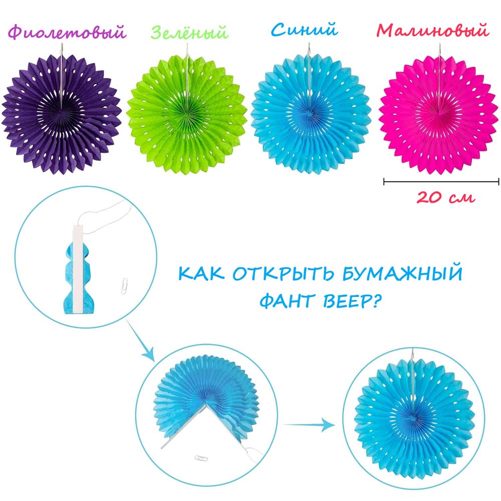 Бумажные фанты веера из тонкого картона, 6 шт:
