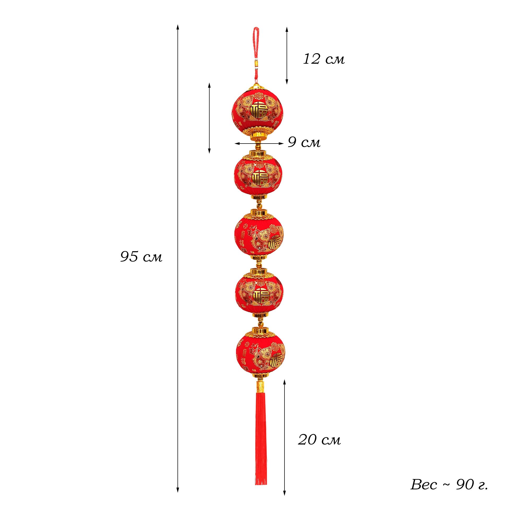 Китайская подвеска с рисунком 9х95см, Фонарики