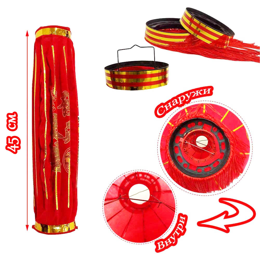 Фонарь изготовлен из нетканой флокированной ткани, ткань долговечная, не выгорает на солнце, водонепроницаемая. Внутренний каркас выполнен из стали.