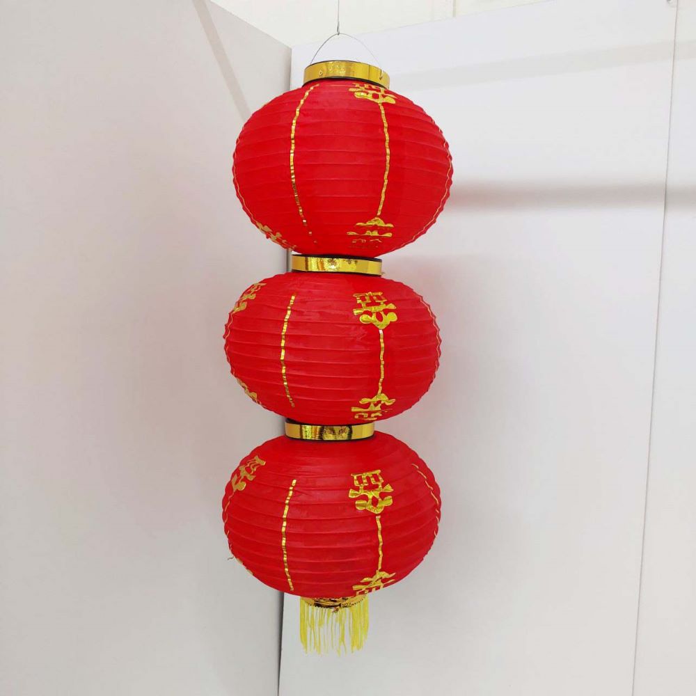 Китайский фонарь Круглый с рисунком, 3 яруса 30см