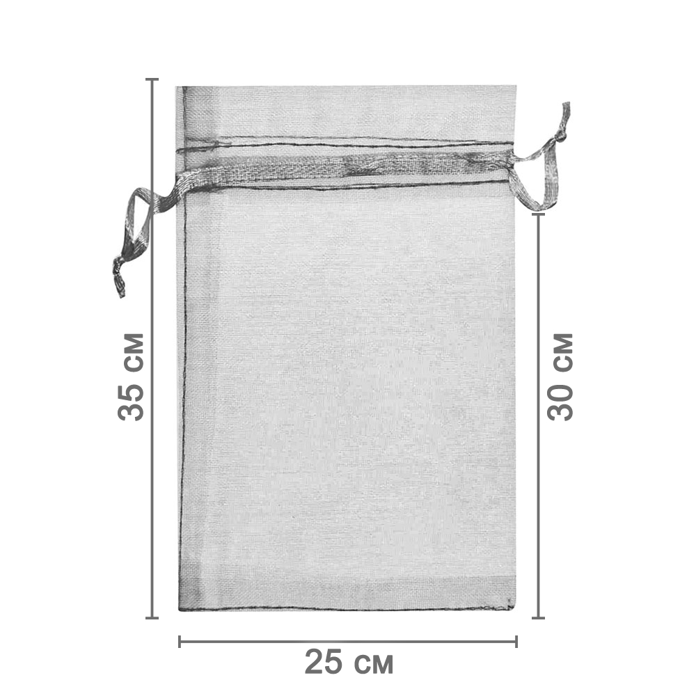 Мешочек из органзы 25 х 35 см — практичный аксессуар для упаковки крупных предметов и подарков. Лёгкая ткань подчёркивает содержимое и придаёт праздничный вид.