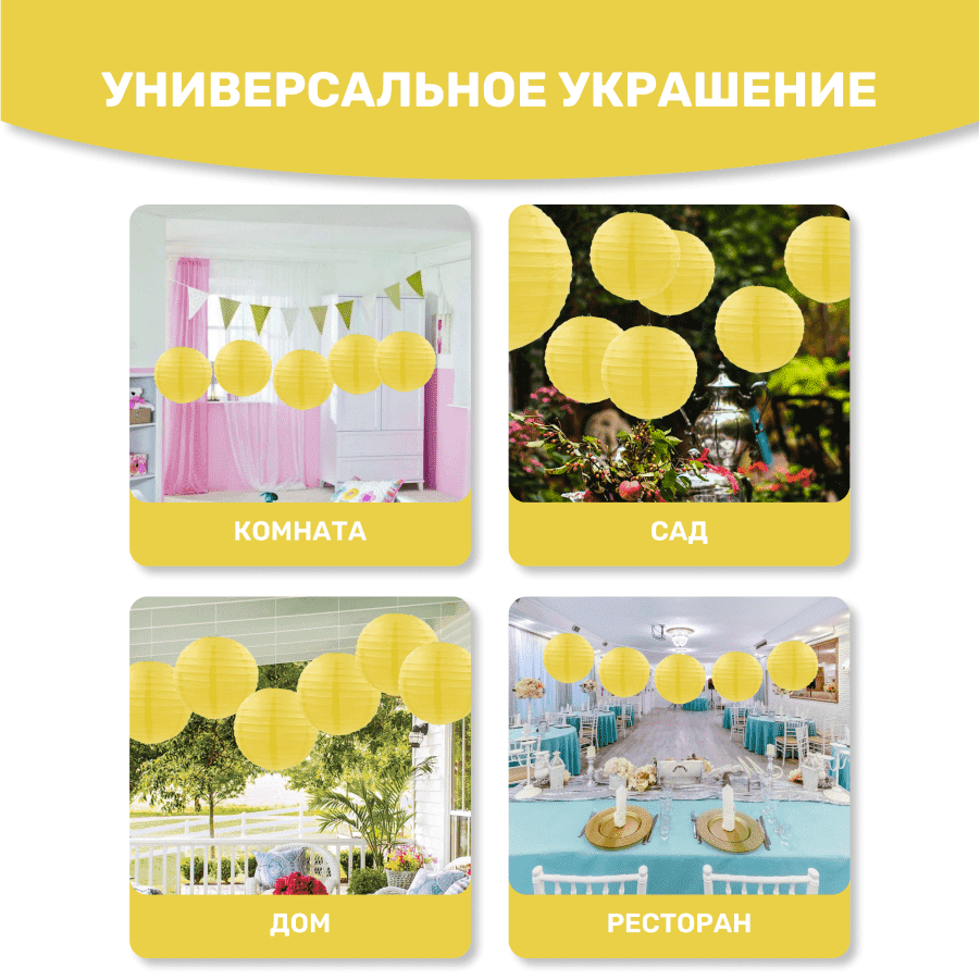В комплект входит 8 бумажных фонариков и лента.