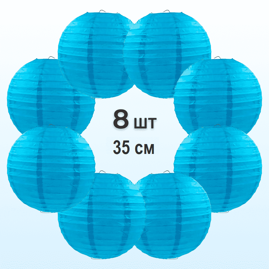 Комплект подвесные фонарики 35 см х 8 шт, синий