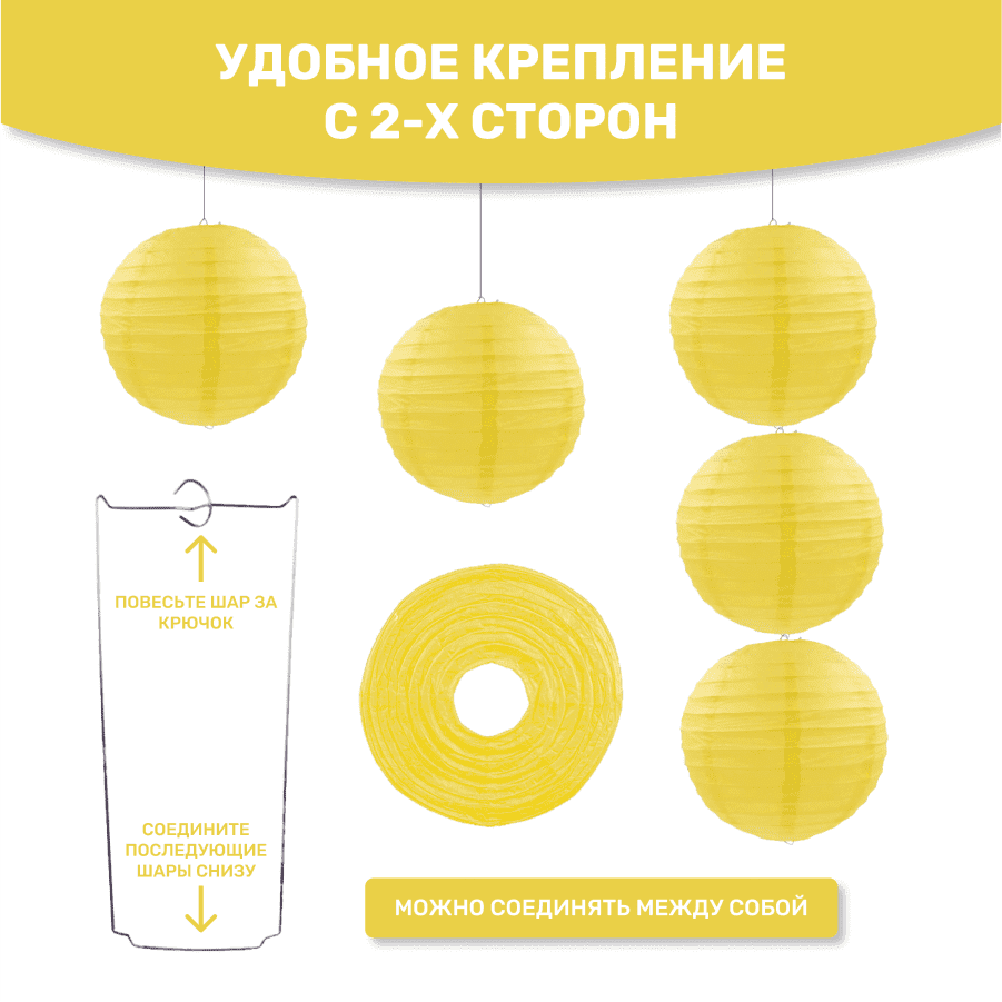 Комплект подвесные фонарики 40 см х 8 шт, желтый