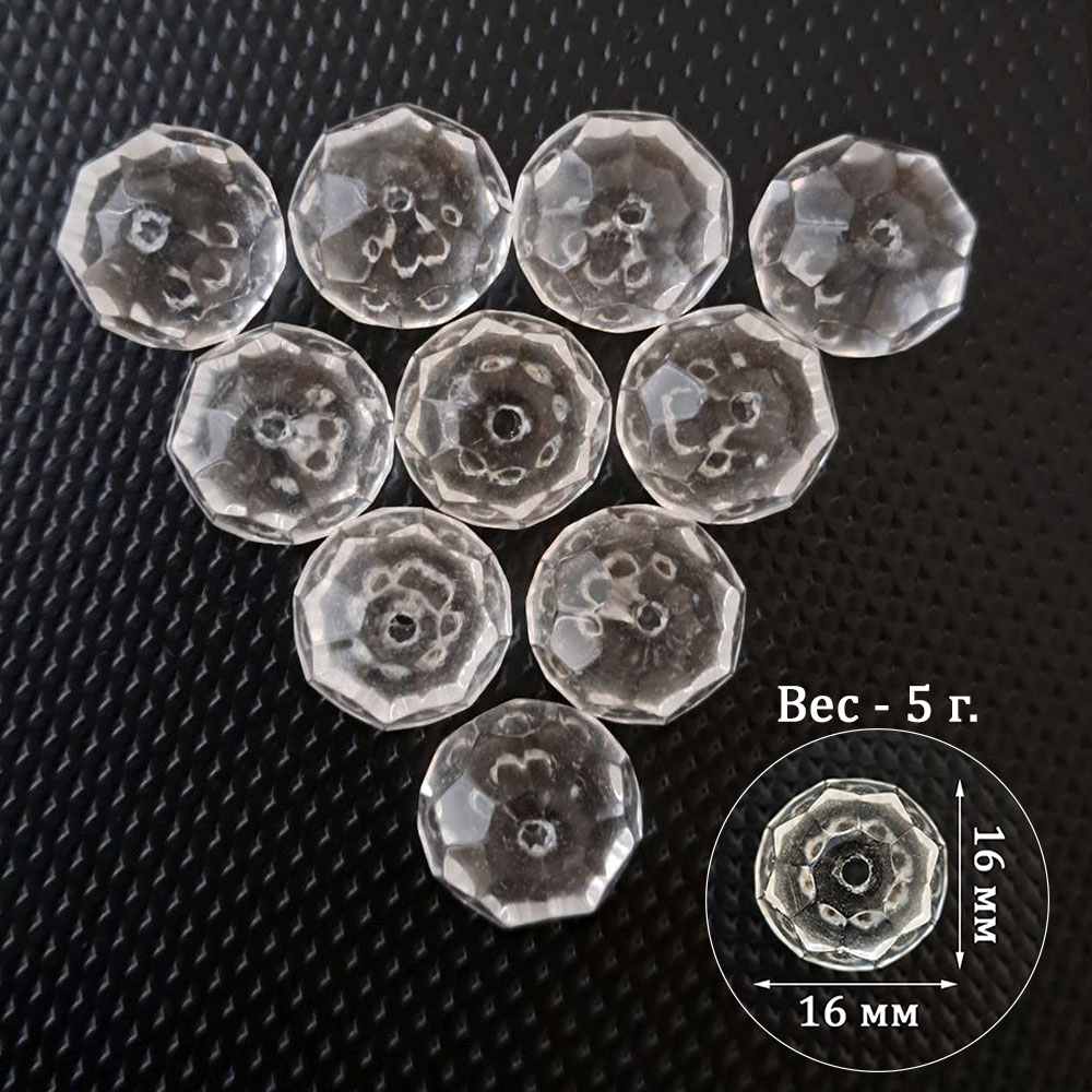Набор прозрачных кристаллов "Граненый круг" 10 штук по 16 мм подойдет для творчества и оформления декора.