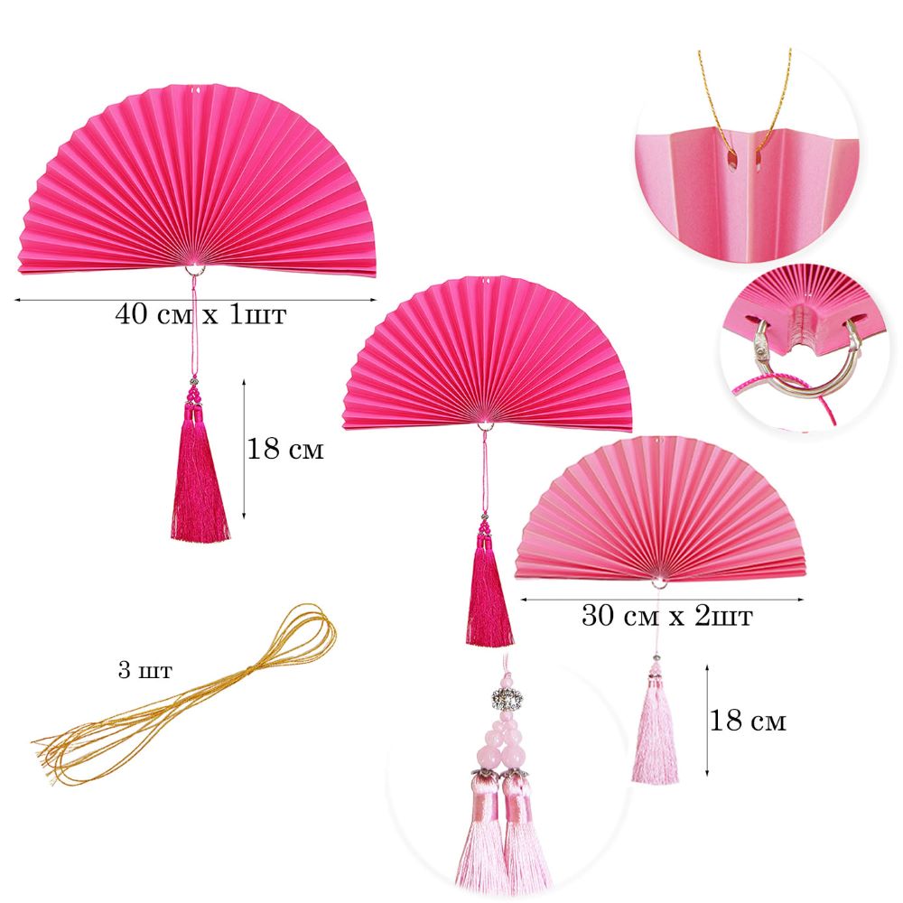 Комплект дополнен лентой для крепления и прочными шнурами для подвешивания вееров.
