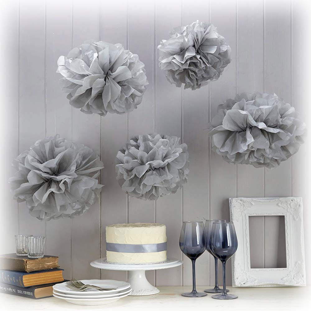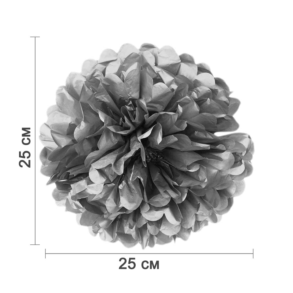 Помпон из бумаги 25 см серебро