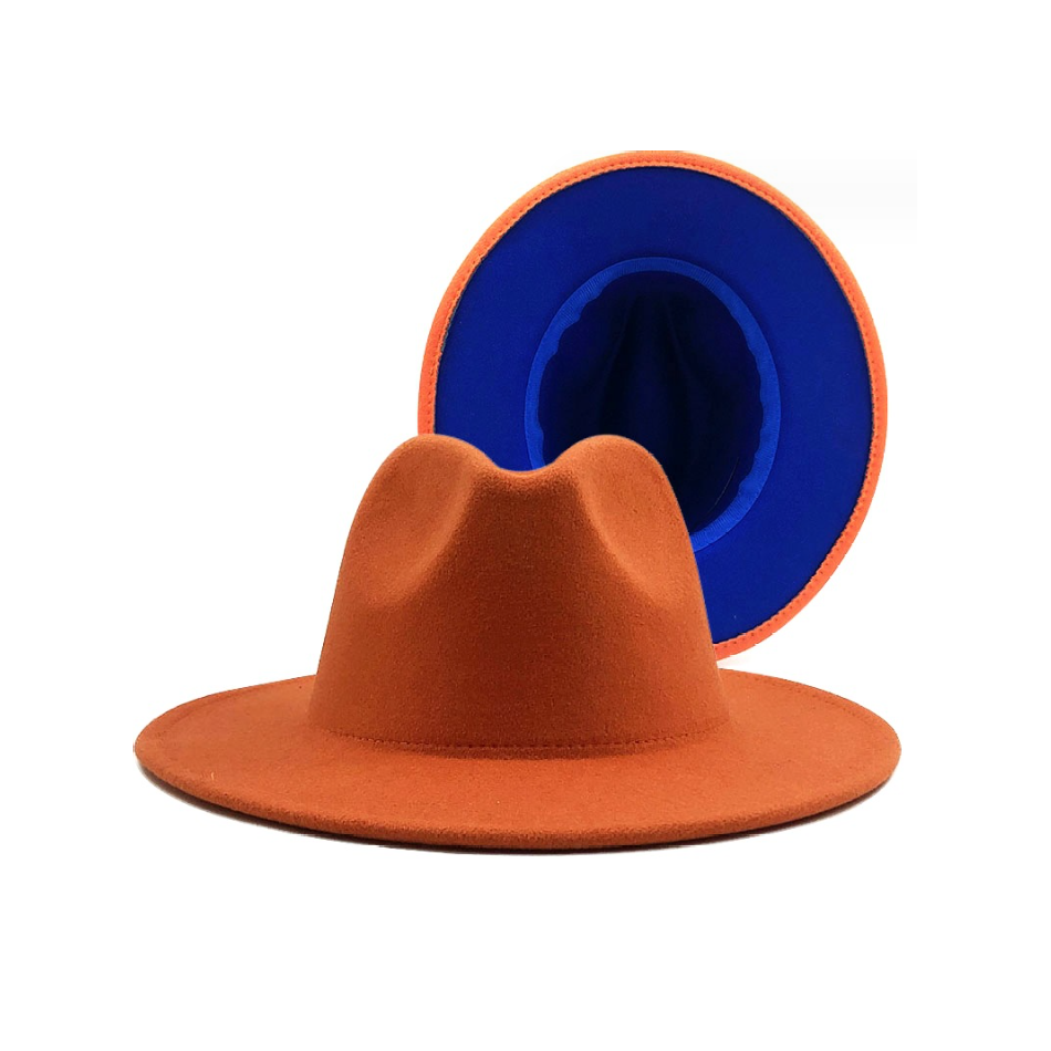 Шляпа Федора фетровая 2 цвета, оранжевый+синий