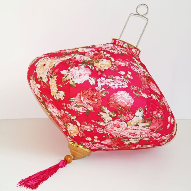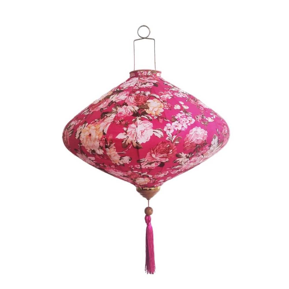 Это традиционные подвесные фонарики ручной работы, изготовленные из шелкового материала с элегантным цветочным узором, которые делают его изысканным и красивым.
