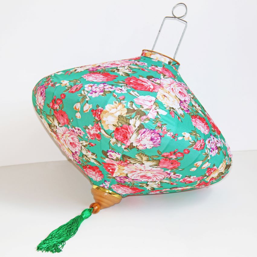 Это традиционные подвесные фонарики ручной работы, изготовленные из шелкового материала с элегантным цветочным узором, которые делают его изысканным и красивым.